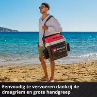 De Einhell Accu Koelbox TE-COL 18/27 Li Solo is een onmisbare metgezel in het dagelijks leven. Of het nu gaat om koele drankjes in de zomer of een warme maaltijd tussendoor: De Accu Koelbox is een must-have voor uitstapjes in je vrije tijd en voor een welverdiende lunchpauze op de bouwplaats. De koelbox maakt deel uit van de Einhell Power X-Change productlijn en kan daarom worden gecombineerd met elke accu uit deze productlijn. Tegelijkertijd wordt de koelbox geleverd met een stroomkabel van 230 V en een kabel van 12 V. Afhankelijk van de beschikbare voedingsbron selecteert de koeler automatisch de werking. Hierdoor kan de koelbox thuis bij het stopcontact worden voorgekoeld en onderweg verder worden gekoeld met behulp van de sigarettenaansteker in de auto. Voor de 12 V-werking is de koelbox uitgerust met een autoaccu-beschermer, die voorkomt dat de accu van de auto te diep wordt ontladen. De inhoud kan dan koel worden gehouden met behulp van een accu. De koelbox heeft een inhoud van 27 liter en kan hierdoor tot 36 blikjes (0,33 L elk), 20 flessen (0,5 L elk) of 6 grote flessen van 1,5 L bevatten. Er wordt een flexibel tussenschot meegeleverd voor het verdelen van de koelruimte en een flesopener is geïntegreerd in de behuizing. Daarnaast is de koelbox uitgerust met een groot vakvoor accessoires, een zijvak met de accuhouder en een zijvak voor de extra accu om de levensduur te verlengen. Met energieklasse D heeft de Accu Koelbox een laag energieverbruik. Een accu laadstatusindicator is geïntegreerd direct op de koelbox. De koel- of verwarmingsfuncties kunnen worden geselecteerd via een centrale schakelaar. De draaischakelaar kan worden gebruikt om de koelcapaciteit continu aan te passen tot 20 °C onder de omgevingstemperatuur. De warmhoudfunctie kan worden ingesteld op maximaal 60 °C. Voor eenvoudig transport wordt de koelbox geleverd met een verstelbare draagriem met schouderkussen en een grote draaghandgreep, die ook het deksel van de koelbox open kan houden indien nodig. De accu koelbox wordt geleverd zonder accu en oplader. Deze zijn apart verkrijgbaar.
