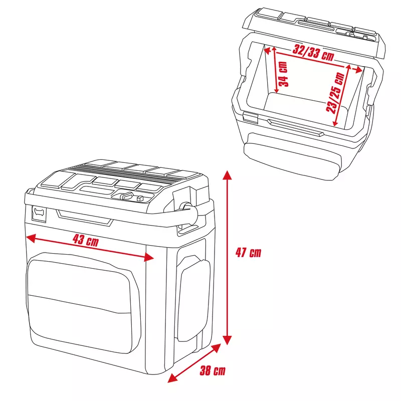 Dankzij een centrale schakelaar kunt u kiezen tussen koelen of verwarmen. Met de draaischakelaar kan het koelvermogen continu worden aangepast tot 20 °C onder de omgevingstemperatuur, terwijl de warmhoudfunctie tot 60 °C bereikt. Bij gebruik op accu is een accu laadstatusindicator direct op de koelbox geïntegreerd, zodat altijd kan worden vastgesteld wanneer de accu moet worden vervangen.
