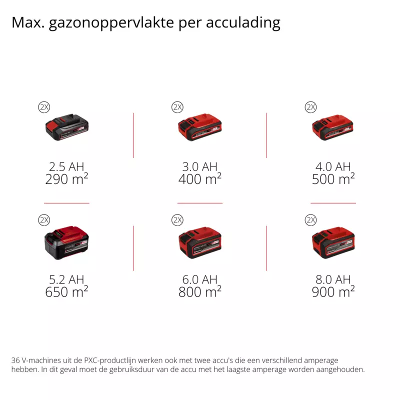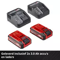 De grasmaaier wordt geleverd met twee 3.0 Ah Power X-Change Plus accu's en twee opladers – zo kun je direct aan de slag. De hoogwaardige lithium-ion accu's zijn te gebruiken in alle Einhell-machines van deze innovatieve productlijn. De geïntegreerde vulstandniveau-indicator geeft via drie LED's te allen tijde de beschikbare energiereserves aan.
